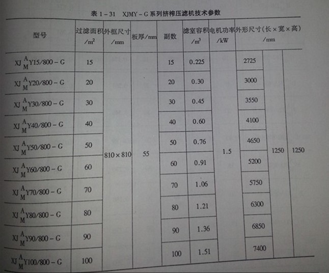 各類壓濾機技術(shù)參數(shù)見下表: